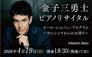 - 金子三勇士ピアノリサイタル2026 オール・ショパン・プログラム 〜ワルシャワからのお便り〜 2026年4月19日(日)開催 ※チケット予約終了